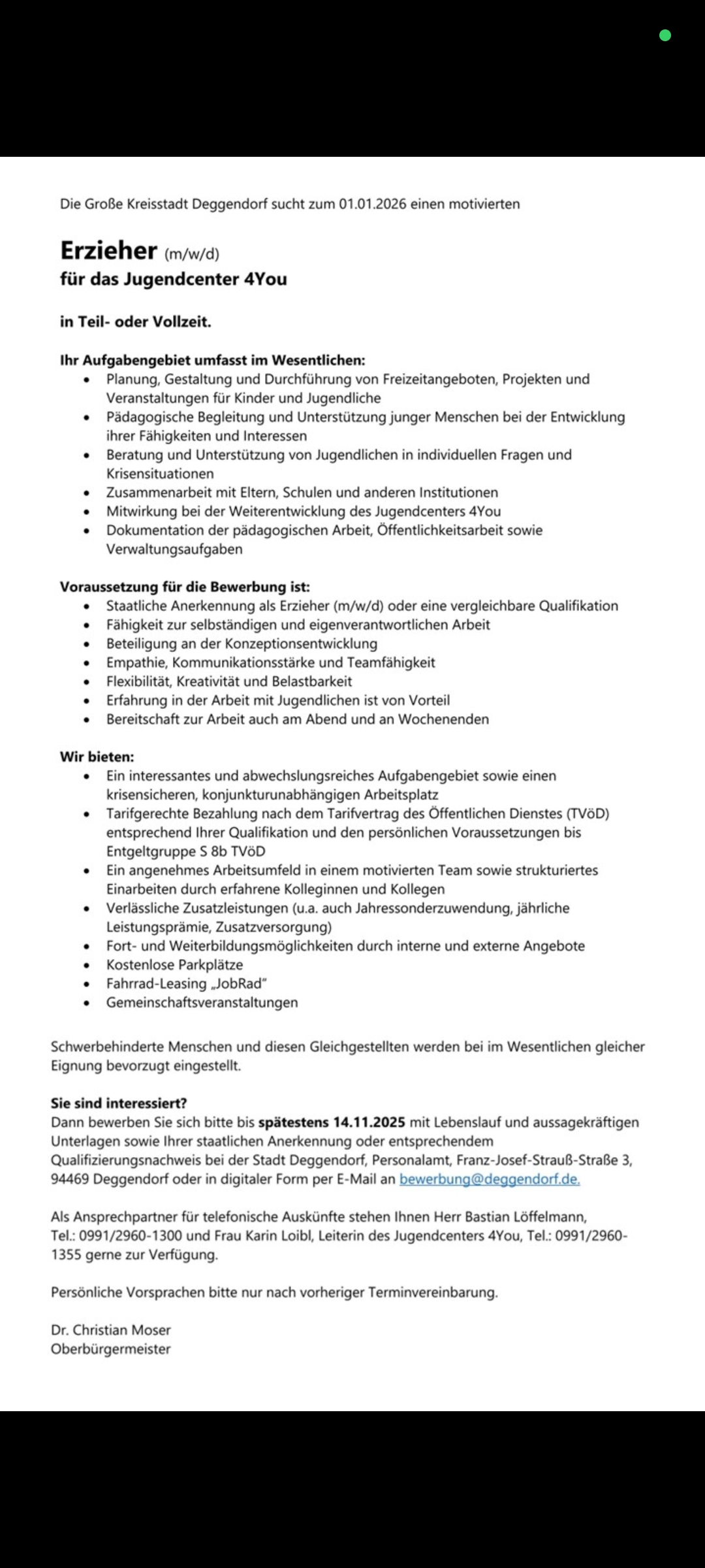 des Jugendcenters 4You der Stadt Deggendorf